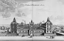 Pabellón central de los establos (el ala fue demolida ca. 1900).