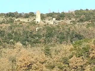En el extremo de levante de la plataforma que acoge todo el yacimiento, están las ruinas del castillo, la planta del cual recuerda la del castillo de Mur de la población de Castell de Mur. Se conservan bastantes trozos de los paramentos de los muros, en alturas diferentes, que muestran un aparato de sillares muy bien escuadrados y perfectamente colocados en hileras regulares. Destaca en medio del muro de levante la torre maestra, o del homenaje, así como tres circulares.