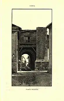 Modernamente llamada Puerta de Navarra, se ubicaba frente al puente sobre el río Duero, junto a ella había un postiguillo. La torre en la que se ubicaba esta puerta que daba acceso al puente (defendido con un torreón ubicado en su parte central), estaba cubierta con techumbre de madera y tejas, ambos tejados de torre y torreón tuvieron que repararse en 1505