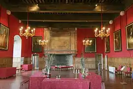 El patio trasero, al este, actualmente sin edificaciones, contenía anteriormente un calabozo construido por Felipe II de Francia poco antes de 1219, con ocasión de la confiscación de la señoría y la colegiata Saint-Ythier, transferidos por M. de Béthune a la ciudad.