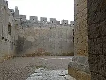 En el lado sur, al desmantelar un frontón moderno apareció una puerta de entrada a la liza.[8] En el interior del patio se descubrió un hoyo que había servido de basurero y que contenía residuos de vajillas, tanto de cocina como de mesa, que se pudieron datar del siglo XV y principios del siglo XVI. En ese mismo basurero se hallaron huesos de animales mezclados con pulseras de vidrio.