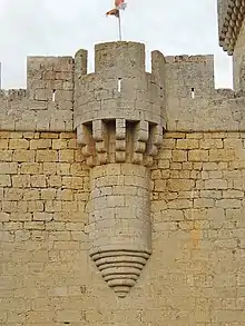 - Torrecilla volada sobre canes que se colocaban por lo general en las esquinas de las torres. En este caso está en el centro del lienzo. Glosario de Mora Figueroa