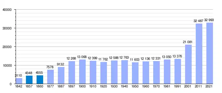 En 1924, tras un proceso separatista, la corporación decidió por 14 votos contra 1 la anexión a Vizcaya. Debido a que el diputado por Castro en la Diputación provincial y el resto no llegaron a ningún acuerdo, ésta dimitió en pleno. Esta petición de anexión fue derivada de la nula distribución de medicamentos contra la terrible gripe española en 1918 por parte de la diputación provincial de Santander, que dejó en el olvido la región castreña. El municipio recibió ayuda por parte de las autoridades vizcaínas y fue esta situación la que llevó a la población local a pedir su anexión a la provincia vasca. La posterior corporación municipal, designada por la dictadura primoriverista, y la nueva diputación de la provincia desestimaron la solicitud de la corporación castreña saliente.[16]Hoy en día es una ciudad turística y residencial. A principios del 2007 Castro Urdiales contaba con una población censada de 29 660 habitantes, superando la cifra de los 30 000 a lo largo del mismo año.[17] Castro-Urdiales es el tercer municipio con más población de Cantabria (superando a Camargo) y el noveno en superficie (véase lista). Las cifras de población hacen referencia a la población de derecho por lo que cabe destacar, que en verano el municipio ve incrementado su población en una gran cuantía, superando con creces su población de hecho durante dicha época.