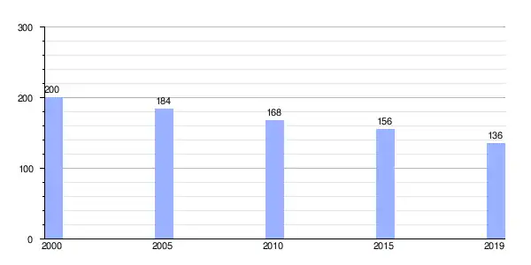 | Gráfica de evolución demográfica de Castro (parroquia) entre 2000 y 2020 |