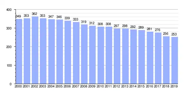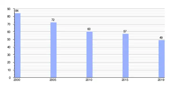 | Gráfica de evolución demográfica de Castro (parroquia) entre 2000 y 2019 |
