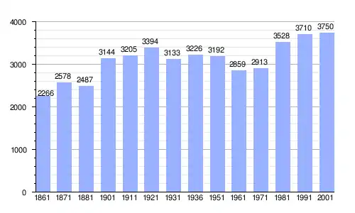 | Gráfica de evolución demográfica de Castrocielo entre 1861 y 2001 |