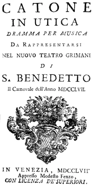 Catón en Útica se representó por vez primera en el Teatro delle Dame de Roma el 19 de enero de 1728.