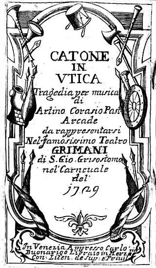 Catón en Útica se representó por vez primera en el Teatro delle Dame de Roma el 19 de enero de 1728.