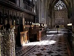 La altura de las naves laterales provoca una ausencia de triforio que de luz al espacio central, como es habitual en la arquitectura medieval inglesa. Toda la luz interior debe llegar desde las ventanas laterales que, en consecuencia, son muy grandes. A la altura del coro, en la Lady chapel un gran ventanal recorre toda la parte superior de la pared del altar, y baña de luz toda la capilla.