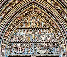 Tanto el vestíbulo como la portada oeste están poblados de esculturas de finales del siglo XIII, que representan a Satanás y a diversos personaje bíblicos. En el interior, la nave principal también está embellecida con una interesante estatuaria. En el luminoso presbiterio se puede contemplar un retablo de Hans Baldung Grien (siglo XVI).