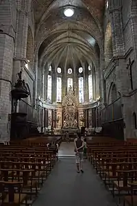 Se aprecian vestigios del románico. Las columnas son en su mayoría de época gótica y los arcos que sostienen las bóvedas son del siglo XIV.