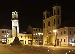 En 1647algunos jesuitas se instalaron aquí y comenzó la reforma católica de la ciudad y sus alrededores. Durante los años 1695-1701 se construyó su propia universidad en el sitio del Königberger. Se empezó la construcción de la iglesia en 1702 como una copia de la Iglesia del Gesú en Roma. La construcción se detuvo cuando en 1703 cuando la ciudad fue ocupada por tropas en contra los Habsburgo de Francisco II Rákóczi. La obra se reanudó en 1709 y el 24 de septiembre de 1715 se consagró la iglesia a San Francisco Javier. En ese momento, la iglesia era un edificio barroco con una sola nave y seis capillas. La fachada carecía de una torre. En 1773 los jesuitas tuvieron que abandonar la iglesia cuando en julio de 1773 la Orden fue suprimida por el papa Clemente XIV.