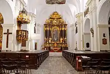 La iglesia barroca fue construida en 1721, por encargo del cardenal Imre Csáky, por el arquitecto milanés Giovanni Battista Carlone y consagrada a Santa Ana en 1746. En 1811 la torre de la iglesia fue dañada por un incendio en 1834 y fueron construidas las dos torres del proyecto por Ferenc Povolny. En 1928 se añadieron entradas laterales y se hicieron trabajos de restauración, siendo renovada la entrada con la creación de una amplia escalera, y las tres estatuas en la fachada dedicadas a San Emerico de Hungría, San Esteban y la virgen con el niño Jesús.[3]