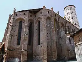 Se trata de una iglesia de ladrillo del siglo XIV con un campanario octogonal ornamentado de cinco niveles construido cerca de 1346. Una placa a la derecha de la entrada occidental registra la visita del poeta italiano Petrarca en 1330, organizada por el obispo, Jacques Colonna (1328-41), también de extracción italiana, que hizo a Petrarca un canon honorario en 1335. La fachada occidental típica del oeste es del gótico meridional y es relevada solamente por un pequeño roundel y la entrada flamígera en piedra. El exterior severo es característico de la región toulosana con altos contrafuertes alrededor.