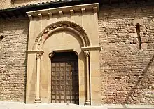 Esta edificación levantada a principios del siglo xii, entre 1100 y 1127, era de grandes dimensiones (70 metros de largo por 50 de ancho),[34] siendo solo superada en esa época por la catedral de Santiago de Compostela.[lower-alpha 4] De hecho el mismo maestro Esteban que hizo este templo se tiene noticia de su participación en la pamplonesa ya que recibió del obispo Pedro de Roda una donación de casas y viñas.[35]