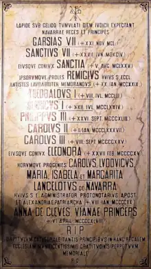 - Iturralde y Suit, Juan (1915). «Enterramientos reales en la catedral de Pamplona». Boletín de la Comisión de Monumentos Históricos y Artísticos de Navarra.