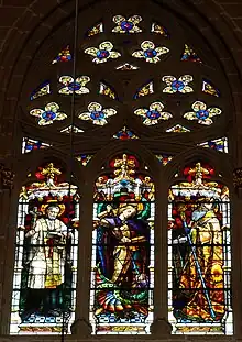 Las ventanas de la nave central son las de mayor tamaño. Hay dos por tramo, a gran altura, que son alternativamente de mayor y menor tamaño y presentan un diseño alternativo a su vez. Están compuestas por un arco apuntado, abocinado, integrado por dos arquivoltas, apeadas a cada lado en otras tantas columnillas. La parte inferior está rematada por un vierteaguas en talud y su interior está dividido por dos maineles que sujetan una tracería en el vértice. Los dos diseños que se repiten son, en los tramos impares, una serie de arcos apuntados muy agudos, secantes y tangentes, cuyo interior se rellena a base de cuadrilóbulos inscritos en círculos. En los tramos pares, la tracería está formada por tres grandes círculos que contienen a su vez tres cuadrados de lados curvos con cuadrilóbulos inscritos.