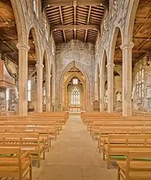 El extremo este de la actual iglesia es el más antiguo. En el muro este del presbiterio hay piedras de la iglesia del siglo XIII; el presbiterio data del siglo XV. La iglesia de planta cruciforme del siglo XV también contenía una pantalla de coro con galería superior, pero Isabel I ordenó que se quitara;[10] se pueden ver las marcas en los muros.