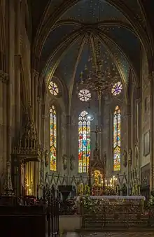 La catedral de Zagreb, situada en el barrio de Kaptol de la capital croata, es un templo católico dedicado a la Asunción de María y a San Esteban y San Ladislao de Hungría. Es no solo el edificio más alto de Croacia sino también el edificio sacro más monumental en estilo gótico al sureste de los Alpes.[1] La catedral es típicamente gótica, al igual que su sacristía, que es de gran valor arquitectónico. La primera piedra se colocó en 1093.[2] La catedral resultó afectada en 1880 por un terremoto que obligó a una importante reconstrucción del edificio, especialmente de la fachada diseñada por el prestigioso arquitecto austríaco, Hermann Bollé, junto a los dos campanarios de 105 metros de alto que se han convertido en una referencia visible desde la mayor parte de la ciudad.[2] El interior y una de sus dos torres resultó dañada en un nuevo terremoto que tuvo lugar el 22 de marzo de 2020.[3] Es la catedral de la arquidiócesis de Zagreb.
