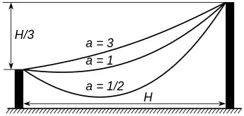 es la componente horizontal de la tensión, que es constante, es la masa por unidad de longitud del hilo y es la función coseno hiperbólico. Si se desarrolla en series de Taylor la ecuación de la catenaria () se obtiene una curva cercana a una parábola: