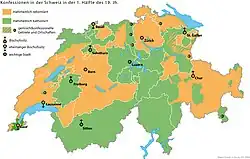 Entre 1823 de 1836 se forma la diócesis de Coira-San Galo, aunque en 1847 ésta fue escindida en dos diócesis distintas. En 1819 los cantones de Uri, Unterwalden, Glaris y Zúrich son integrados a la diócesis de Coira, en 1824 también el de Schwyz. En 1828 es reconstruida la diócesis de Basilea, cuya sede se fija en Soleura. A esta diócesis pasan los cantones de Soleura, Zug, Lucerna y la parte católica de Berna. En 1829 su jurisdicción se extiende a los cantones de Basilea-Ciudad, Basilea-Campiña y Schaffhausen. En el Valais el obispo pierde su poder temporalmente, aunque la diócesis no experimenta ninguna modificación.