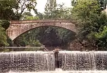 El puente, que da nombre a la localidad, se encuentra sobre el río Nora, que en este paraje es frontera entre los concejos de Llanera y Oviedo. Tiene origen medieval aunque a lo largo de su vida ha sufrido varias reparaciones y reconstrucciones. De su fábrica medieval no queda ningún resto, siendo su traza actual del siglo XVI. «La ponte» de Cayés es mencionada en la carta-puebla otorgada Alfonso X el Sabio al concejo de Siero, en 1270. Alrededor de finales del siglo XV se realizó una intervención para reparar los daños causados por el tránsito de carros, que fue prohibido. Para ello se colocó una piedra de gran tamaño en medio de él.[3] Por el puente pasaba el camino real que comunicaba la ciudad de Oviedo con la villa de Avilés y su puerto, a través de Llanera y Corvera, siendo una de las principales vía de comunicación de Asturias. En el siglo XVI el puente sufrió diversas reparaciones debido a las riadas del Nora, que en 1522 se vio agravada por la presa del molino[4] y la de 1552, en que perdió uno de sus seis pilares[5] Posteriormente hubo otras intervenciones en los siglos XIX y XX, tras la Guerra Civil. Actualmente tiene dos arco de diferente tamaño, estando el central, de mayor tamaño y sobre el cauce del río, reconstruido con hormigón armado.