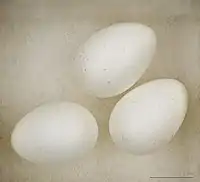 Los huevos son de un color blanco brillante, con unas pocas manchas marrones; típicamente, hay tres huevos en un nido. La hembra realiza sola la incubación por 14 a 16 días, hasta que el cascarón se rompe. Luego, ambos padres alimentan a la cría. Emplumecen tras 17 a 19 días, pero los pichones regresarán al nido pocos días después de su primer vuelo.