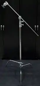 Es un accesorio indispensable en el rodaje, versátil y robusto. Se utiliza para sujetar principalmente elementos de iluminación que tapan, difuminan o reflejan luz, como por ejemplo banderas, esticos o reflectores.[3][4]