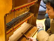 El mecanismo de la celesta se compone de martillos activados por teclas, los cuales golpean por arriba unas láminas metálicas colocadas sobre resonadores de madera.[2] Estas láminas, al ser percutidas, causan una resonancia sobre los resonadores, produciendo un sonido «celestial», de ahí su nombre.