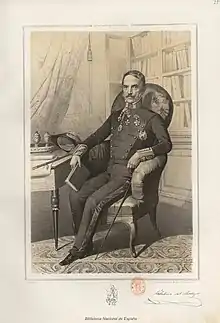 ![]() Celestino del Piélago. Dibujo de Carlos Múgica y Pérez para Estado Mayor General del Ejército Español de Pedro Chamorro y Baquerizo, Madrid, 1851-1854. Biblioteca Nacional de España. | ||