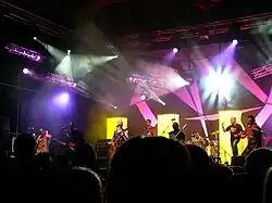 ![]() Celtas Cortos Durante su actuación en el VII Festival Solidario Aspaym (2014) | ||