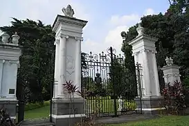 ![]() Vista de la puerta del antiguo Cementerio, ahora un parque | ||