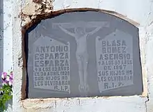 Detalle de señalización de pared en el cementerio municipal de Torrebaja, alusiva a la Guerra Civil Española (1936-39), 2016.