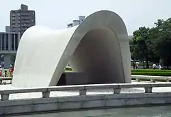Uno de los más famosos ejemplos japoneses es el Memorial, de hormigón, en la ciudad de Hiroshima, en el Parque de la Paz, diseñado por el arquitecto Kenzō Tange para conmemorar las 200.000 víctimas del ataque con bombas atómicas realizados el 6 de agosto de 1945 y 9 de agosto de 1945 por la Fuerza Aérea de los Estados Unidos.