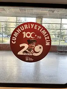 Para el centenario, el Municipio Metropolitano de Estambul eligió el eslogan «Siglo de la Democracia».[64] Se colgaron carteles de Atatürk y banderas turcas en estaciones de metro y varios edificios municipales. La declaración de Atatürk «¡La república es la mayor celebración!» durante la proclamación de la república se reprodujo con frecuencia en el metro. En el día de la celebración, los servicios del Metro de Estambul fueron gratuitos y el municipio organizó una celebración especial en Maltepe.[65]
