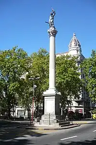 Descripción: Columna pedestal, con estatua de la Libertad en la cumbre.