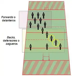 Los centros pertenecen al grupo de backs, defensores o zagueros, e integran "la línea" (también referida como "los tres cuartos") ubicándose en la zona central de la misma. Son jugadores de carácter sobre todo ofensivo y necesitan ser fuertes para poder romper la línea de defensa contraria y luego pasar el balón. También necesitan ser buenos con el tackle o placaje en jugadas defensivas.