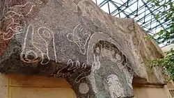 La medicina del principio en una visión del Códice de la Cruz Badiano es un mural hecho por Luis Yaotl Aragón en 1991 ubicado en las escaleras del Hospital de Oncología.[21] En él se retratan doce plantas curativas presentes en el Códice de la Cruz-Badiano, el tratado de medicina tradicional más antiguo del continente, escrito en náhuatl en 1552 por Martín de la Cruz y traducido al latín por Juan Badiano. La obra está hecha con piedra triturada de color natural pegada en una base de fibra de vidrio.[16][17]