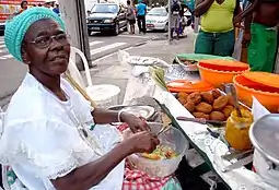 Baiana y su tablero de acarajé.