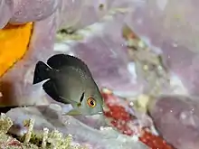 La librea de los juveniles de la especie de pez cirujano Acanthurus pyroferus puede mimetizar en una similar a la de C. vrolikii, como estrategia defensiva.[9]