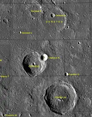Por convención estos elementos son identificados en los mapas lunares poniendo la letra en el lado del punto medio del cráter que está más cerca de Cepheus.