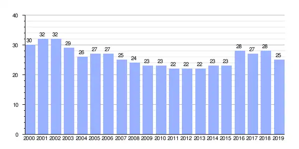 | Gráfica de evolución demográfica de Cerceda (lugar) entre 2000 y 2019 |