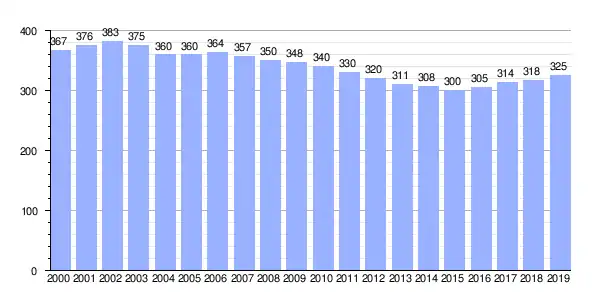 | Gráfica de evolución demográfica de Cerceda (parroquia) entre 2000 y 2019 |