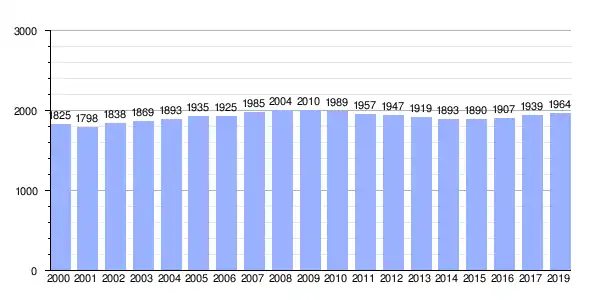 | Gráfica de evolución demográfica de Cerceda (villa) entre 2000 y 2019 |