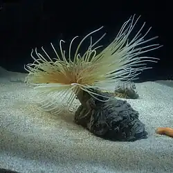 Se debe contar con un sustrato arenoso de unos 12 cm de profundidad, en el que se hará un hoyo para situarlo. Tras su instalación en el acuario pueden pasar algunos días hasta que muestre los tentáculos completamente extendidos.