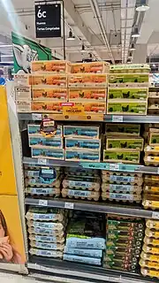 - «Switzerland’s biggest retailer to sell only free-range eggs by 2020». Swissinfo (en inglés) (Swissinfo.ch). 18 de marzo de 2018. Consultado el 25 de octubre de 2018.