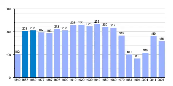 | Gráfica de evolución demográfica de Cervera de Buitrago[5] entre 1842 y 2021 |