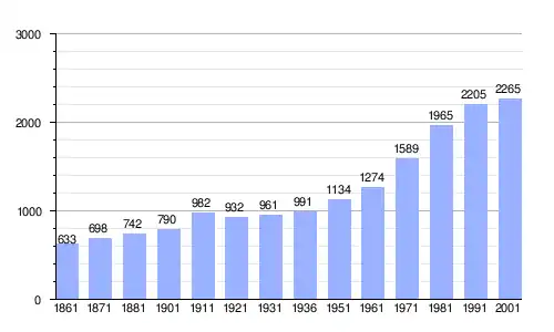 | Gráfica de evolución demográfica de Cesana Brianza entre 1861 y 2001 |