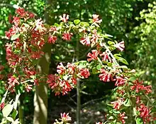Se trata de un árbol de hoja perenne o un arbusto desgarbado que alcanza un tamaño de más de dos metros de altura. Los tallos, y sobre todo las nuevas ramas, a veces, son de color púrpura y un poco peludas. Las hojas son peludas, de forma ovalada, verdes de hasta 13 centímetros de largo. Abundantes inflorescencias aparecen en las puntas de las ramas madres, cada una con un grupo denso de hasta 10 flores rojas peludas. Cada flor tubular es de 2 o 3 centímetros de largo, contando el cáliz alargado de sépalos y la larga corola. El fruto es una baya de unos 1,5 centímetros de ancho, que es de color rojo en el exterior y el interior blanco con cerca de 10 pequeñas semillas de color marrón.