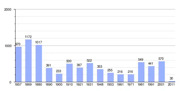 | Gráfica de población de Cetinski Varoš 1857-2011 |
